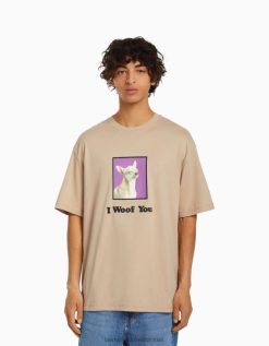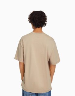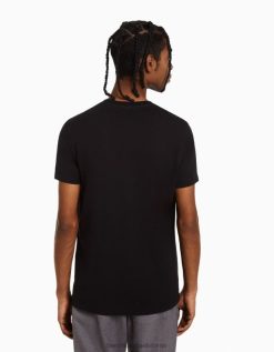 גברים ה-b.i.g. חולצת טריקו עם שרוולים קצרים עם הדפס קופסתי שָׁחוֹר 2L6JD2813 Bershka הַלבָּשָׁה