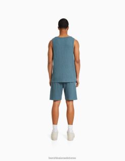 גברים חולצת טריקו מודפסת דהויה בהתאמה עם שרוול קצר עם תיקון שָׁחוֹר 2L6JD2714 Bershka הַלבָּשָׁה