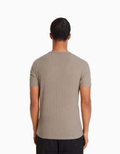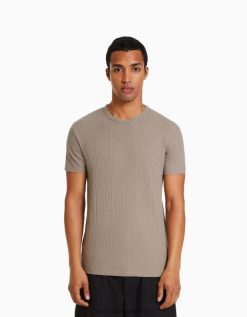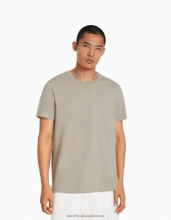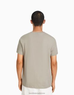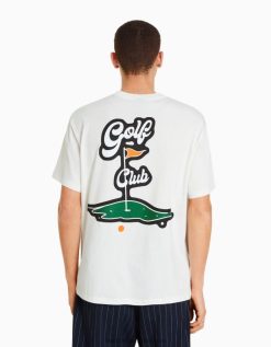 גברים חולצת טריקו עם שרוולים קצרים בכושר קופסתי עם רקמה לבן 2L6JD2614 Bershka הַלבָּשָׁה