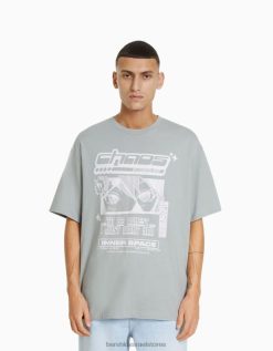 גברים חולצת טריקו עם שרוולים קצרים עם הדפס סליקנוט אפור כהה 2L6JD2729 Bershka הַלבָּשָׁה