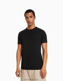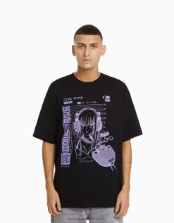 גברים חולצת טריקו עם שרוולים קצרים משנות ה-90 עם הדפס אנימה שָׁחוֹר 2L6JD2733 Bershka הַלבָּשָׁה