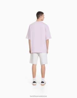גברים מכנסי ברמודה מודפסים בגזרה רגועה צבע קרם 2L6JD3325 Bershka הַלבָּשָׁה