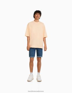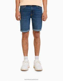 גברים מכנסי ברמודה ג’ינס רול אפ סקיני כְּחוֹל 2L6JD3344 Bershka הַלבָּשָׁה