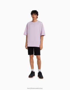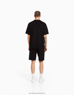 גברים מכנסי ברמודה מודפסים בגזרה רגועה שָׁחוֹר 2L6JD3326 Bershka הַלבָּשָׁה