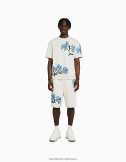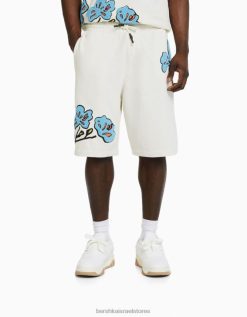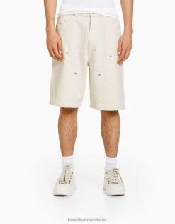 גברים מכנסי ברמודה עם טלאים קרם 2L6JD3349 Bershka הַלבָּשָׁה
