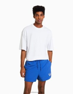 גברים מכנסי ברמודה עם הדפס ניילון כְּחוֹל 2L6JD3372 Bershka הַלבָּשָׁה