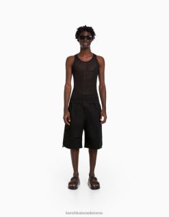 גברים מכנסי ברמודה פופלין מצנח שָׁחוֹר 2L6JD3439 Bershka הַלבָּשָׁה