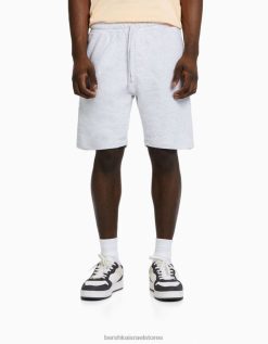 גברים מכנסי ברמודה קטיפה בסיסיים אפור 2L6JD3320 Bershka הַלבָּשָׁה
