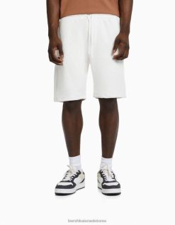 גברים מכנסי ברמודה סריג במרקם קרם 2L6JD2997 Bershka הַלבָּשָׁה