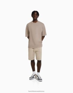 גברים מכנסי ברמודה נגר כותנה חוֹל 2L6JD3294 Bershka הַלבָּשָׁה