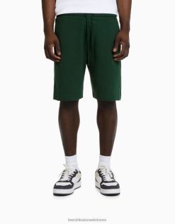 גברים מכנסי ברמודה קטיפה בסיסיים ירוק 2L6JD3317 Bershka הַלבָּשָׁה