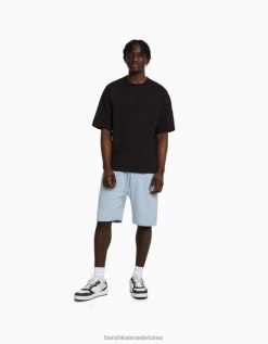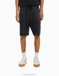 גברים מכנסי ברמודה קצרי קטיפה דהויים שָׁחוֹר 2L6JD3361 Bershka הַלבָּשָׁה