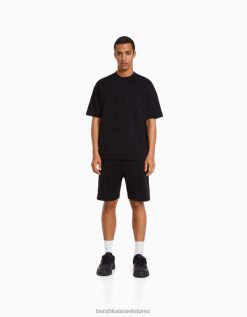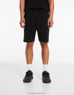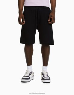 גברים מכנסי ברמודה קצרי קטיפה interlock שָׁחוֹר 2L6JD3373 Bershka הַלבָּשָׁה