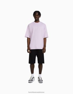 גברים מכנסי ברמודה קצרי קטיפה דהויים וָרוֹד 2L6JD3360 Bershka הַלבָּשָׁה