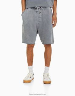 גברים מכנסי ברמודה קצרי קטיפה דהויים אפור 2L6JD3362 Bershka הַלבָּשָׁה