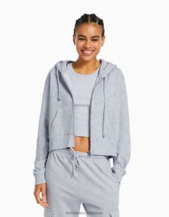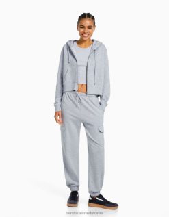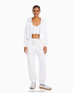 נשים סט סווטשירט קטיפה ומכנסיים קצרים מודפסים עם שרוולים קצרים קרם 2L6JD2049 Bershka הַלבָּשָׁה