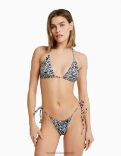 נשים חולצת ביקיני בהדפס זברה קרם 2L6JD1772 Bershka הַלבָּשָׁה