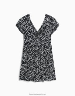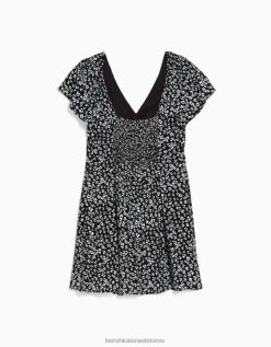 נשים שמלת מיני תחרה בלונדינית עם שרוולים ארוכים עם פירוט צווארון קרם 2L6JD214 Bershka הַלבָּשָׁה