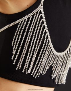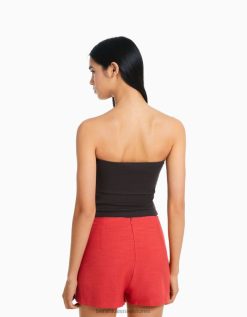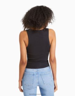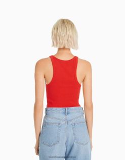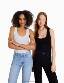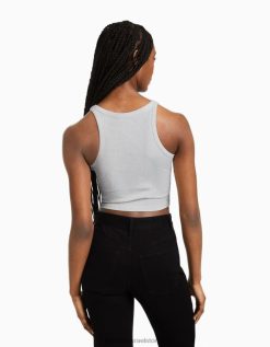 נשים אבנים מתגלגלות מודפסות חולצת טריקו סריג פוינטל ללא שרוולים לבן 2L6JD628 Bershka הַלבָּשָׁה
