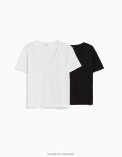נשים 2 חבילות של חולצות טריקו עם צווארון V בהתאמה רגילה צִבעוֹנִי 2L6JD635 Bershka הַלבָּשָׁה