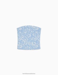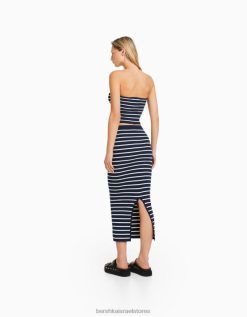 נשים טופ בנדאו סרוג פסים כְּחוֹל 2L6JD759 Bershka הַלבָּשָׁה