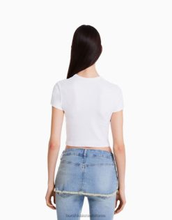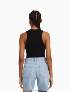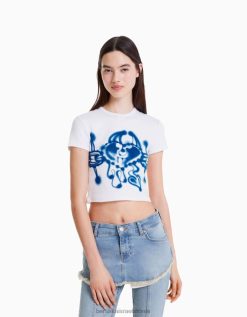 נשים ה-b.i.g. חולצת טריקו עם שרוולים קצרים עם הדפס קופסתי שָׁחוֹר 2L6JD546 Bershka הַלבָּשָׁה