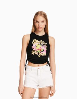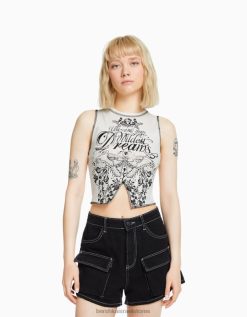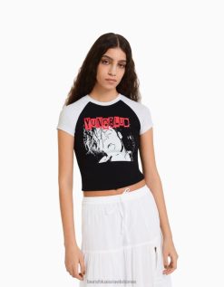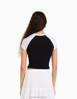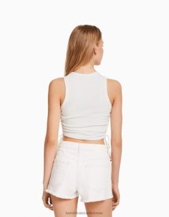 נשים חולצת טי בלונדינית עם שרוולים ארוכים עם צווארון מוצלב קרם 2L6JD502 Bershka הַלבָּשָׁה
