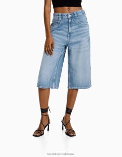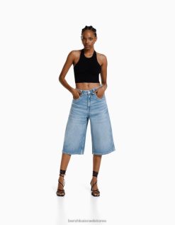 נשים מכנסי ברמודה קפרי ג’ינס כחול בהיר 2L6JD1678 Bershka הַלבָּשָׁה
