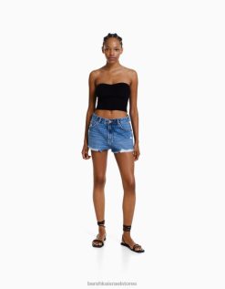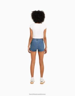 נשים מכנסי ג’ינס קצרים בגזרה גבוהה כְּחוֹל 2L6JD1733 Bershka הַלבָּשָׁה