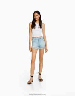 נשים מכנסי ג’ינס קצרים עם רול אפ כחול בהיר 2L6JD1724 Bershka הַלבָּשָׁה