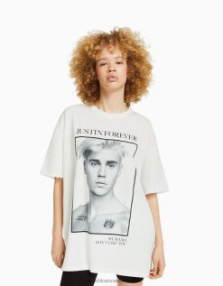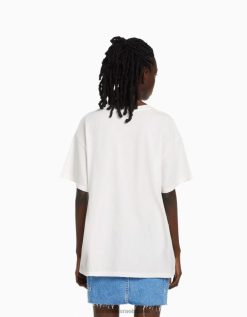 לִשְׁנֵי הַמִינִים חולצת טריקו עם שרוולים קצרים בהדפס טופאק צבע קרם 2L6JD3767 Bershka הַלבָּשָׁה