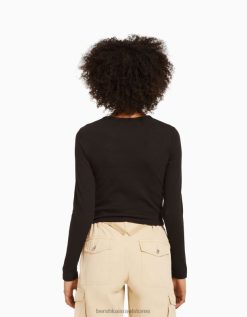 לִשְׁנֵי הַמִינִים חולצת טריקו עם שרוולים ארוכים עם צלעות שָׁחוֹר 2L6JD3863 Bershka הַלבָּשָׁה