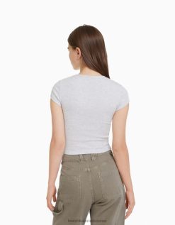 לִשְׁנֵי הַמִינִים חולצת טריקו עם שרוולים קצרים אפור כהה 2L6JD3721 Bershka הַלבָּשָׁה