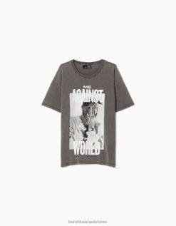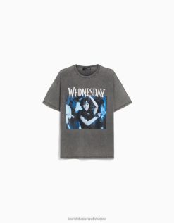 לִשְׁנֵי הַמִינִים חולצת טריקו עם שרוולים קצרים בהדפס יום רביעי אפור 2L6JD3702 Bershka הַלבָּשָׁה