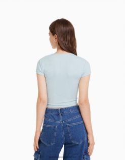 לִשְׁנֵי הַמִינִים חולצת טריקו עם שרוולים קצרים כחול בהיר 2L6JD3716 Bershka הַלבָּשָׁה