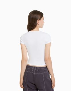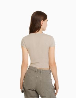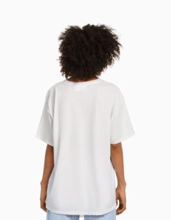 לִשְׁנֵי הַמִינִים חולצת טריקו עם שרוולים קצרים צבע קרם 2L6JD3717 Bershka הַלבָּשָׁה