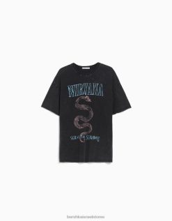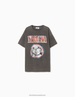 לִשְׁנֵי הַמִינִים חולצת טריקו עם שרוולים קצרים בהדפס נירוונה אפור 2L6JD3703 Bershka הַלבָּשָׁה