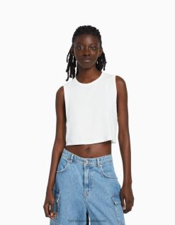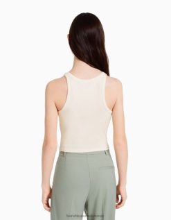 לִשְׁנֵי הַמִינִים גופייה מצולעת צבע קרם 2L6JD3846 Bershka הַלבָּשָׁה