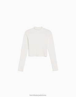 לִשְׁנֵי הַמִינִים חולצת טי עם צווארון גבוה עם שרוולים ארוכים צבע קרם 2L6JD3819 Bershka הַלבָּשָׁה