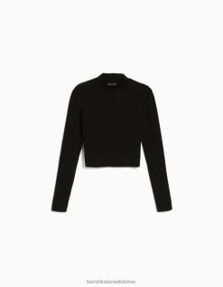 לִשְׁנֵי הַמִינִים חולצת טי עם צווארון גבוה עם שרוולים ארוכים שָׁחוֹר 2L6JD3824 Bershka הַלבָּשָׁה