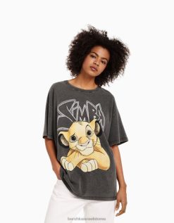לִשְׁנֵי הַמִינִים חולצת טי עם שרוולים קצרים בהדפס סימבה אפור 2L6JD3829 Bershka הַלבָּשָׁה
