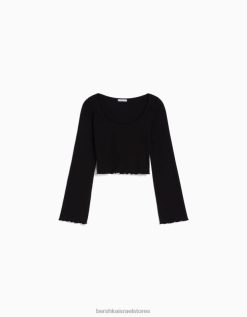 לִשְׁנֵי הַמִינִים חולצת טי עם שרוולים ארוכים עם צווארון שָׁחוֹר 2L6JD3817 Bershka הַלבָּשָׁה