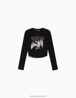 לִשְׁנֵי הַמִינִים חולצת טי עם שרוול קצר בהדפס צפלין שָׁחוֹר 2L6JD3832 Bershka הַלבָּשָׁה