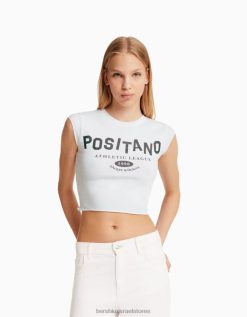 לִשְׁנֵי הַמִינִים חולצת טי קצוצה שרוולים קצרים עם הדפס צבע קרם 2L6JD3738 Bershka הַלבָּשָׁה
