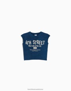 לִשְׁנֵי הַמִינִים חולצת טי שרוול קצר עם הדפס כְּחוֹל 2L6JD3736 Bershka הַלבָּשָׁה