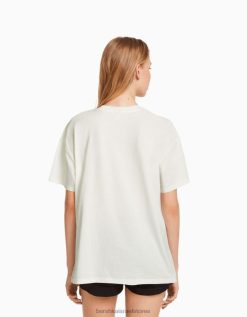 לִשְׁנֵי הַמִינִים חולצת טי שרוול קצר עם הדפס צבע קרם 2L6JD3735 Bershka הַלבָּשָׁה