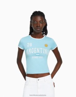 לִשְׁנֵי הַמִינִים חולצת טי קצוצה שרוולים קצרים עם הדפס כחול בהיר 2L6JD3739 Bershka הַלבָּשָׁה