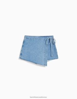 לִשְׁנֵי הַמִינִים חולצת ג’ינס עם קשר בצד כחול בהיר 2L6JD4066 Bershka הַלבָּשָׁה