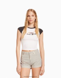 לִשְׁנֵי הַמִינִים מכנסי ברמודה ג’ינס מודפסים כחול בהיר 2L6JD4010 Bershka הַלבָּשָׁה