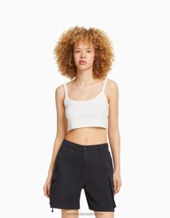 לִשְׁנֵי הַמִינִים מכנסי ברמודה מבד כותנה עם רצועות אפור כהה 2L6JD4026 Bershka הַלבָּשָׁה